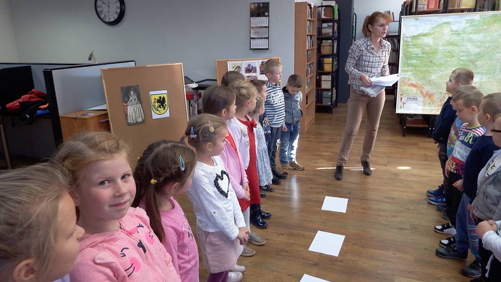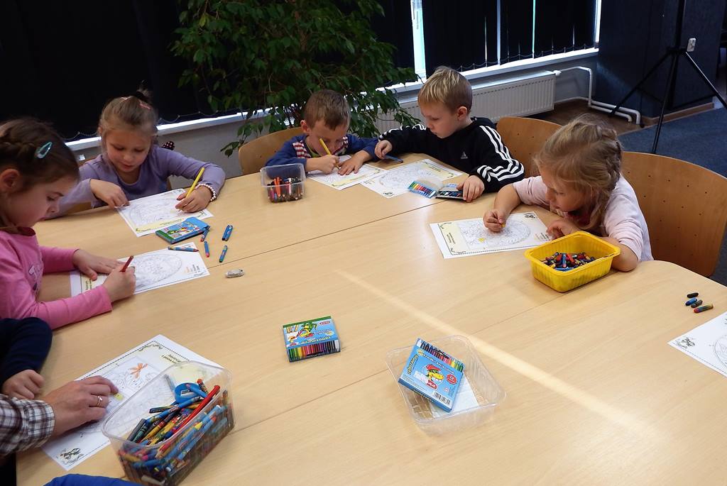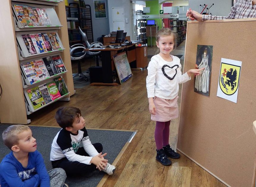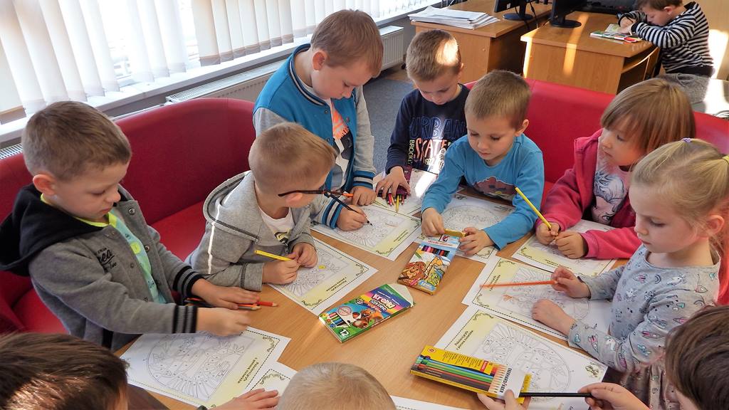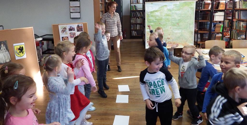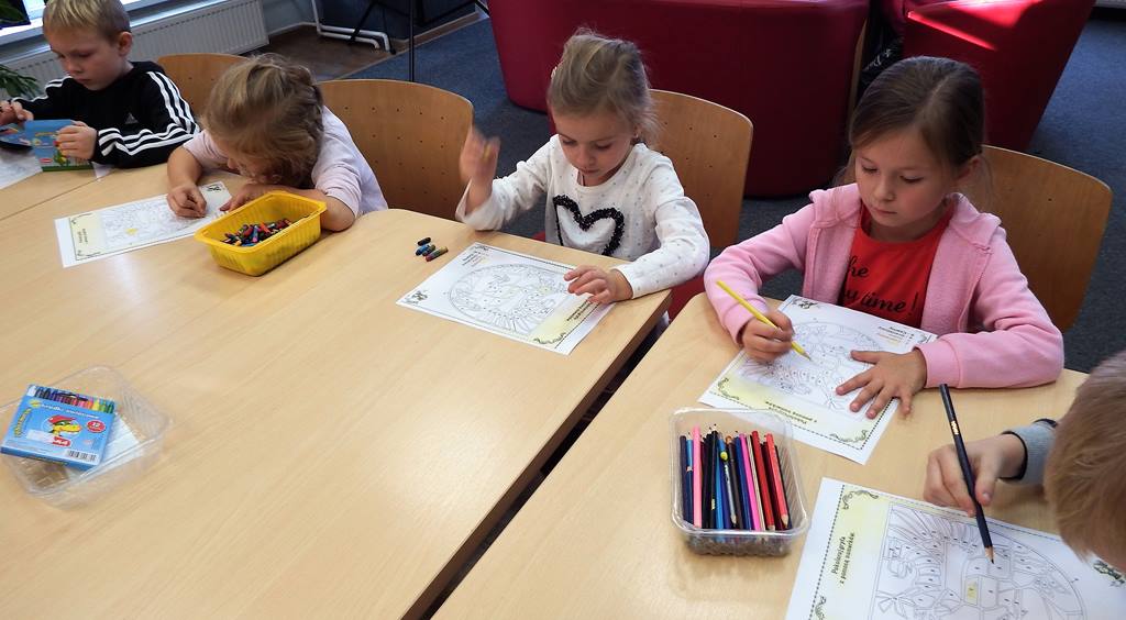 7.11.2018. 5-6-latki uczestniczyły w zajęciach w Bibliotece Miejskiej w Szczecinku. Dzieci poznały legendę na temat naszego miasta, rozpoznawały charakterystyczne miejsca i zabytki, działały z mapą, brały udział w zabawach , kolorowały obrazki dotyczące legendy.