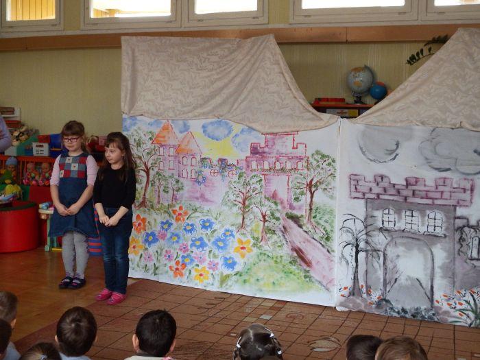 6 latki zaprosiły wszystkie dzieci na teatrzyk ”W królestwie króla Tytonia”. Odegrały postacie pozytywne i negatywne. Celem było przekazanie informacji, że palenie papierosów i przebywanie w zadymionym pomieszczeniu jest szkodliwe dla zdrowia.