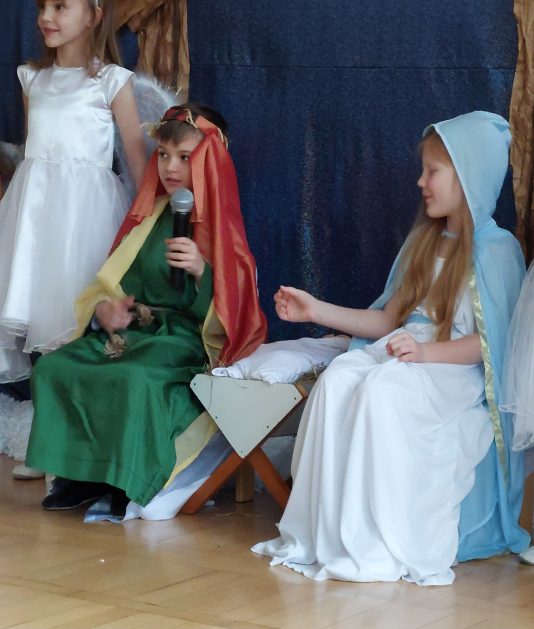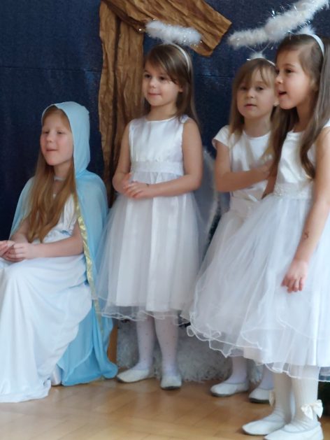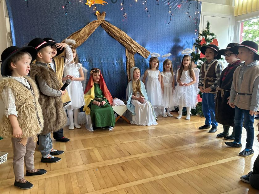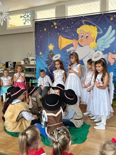 20 grudnia 2024 roku w naszym przedszkolu odbyły się Jasełka Bożonarodzeniowe w wykonaniu grupy 6-latków. Małym aktorom należą się pochwały za pokonanie tremy oraz wczucie się w role. Dziecięca interpretacja narodzin Jezusa Chrystusa wzajemne życzenia, które zakończyły spotkanie, pozwoliły wszystkim poczuć atmosferę zbliżających się świąt, pełną ciepła, radości i bliskości.