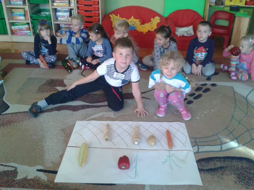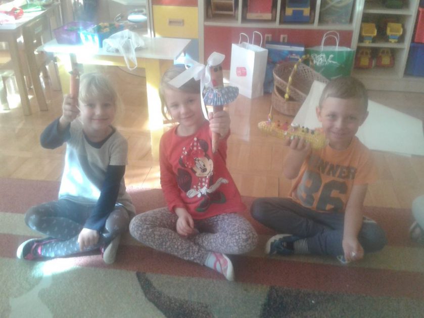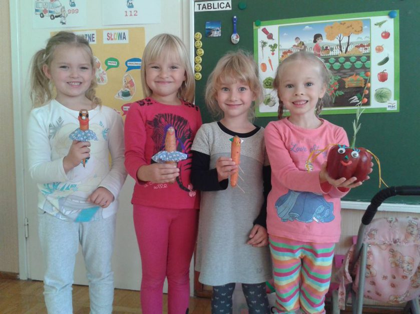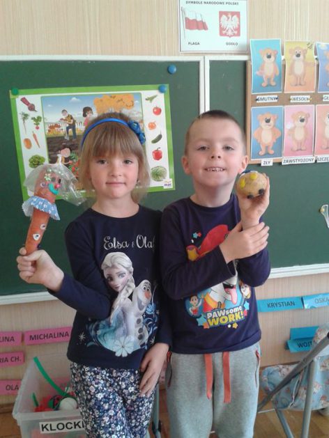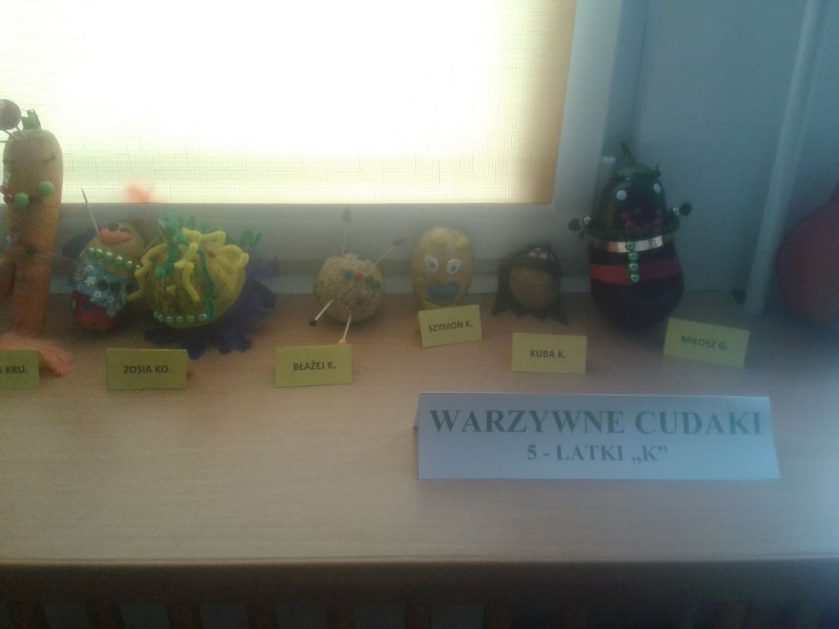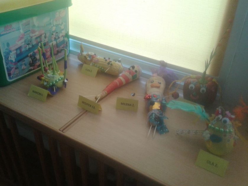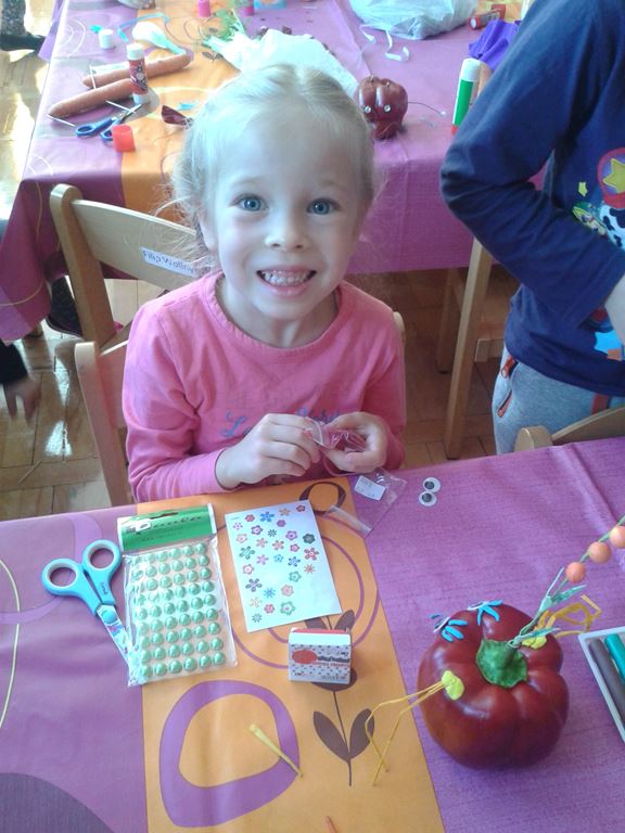 5-latki przekonały się, że warzywa to nie tylko witaminy i zdrowie, ale też wiele fajnej zabawy. Puściły wodze fantazji i przyozdobiły warzywa w koraliki, wstążki, bibułę, plastelinę tworząc śmieszne i urocze cudaki 🙂