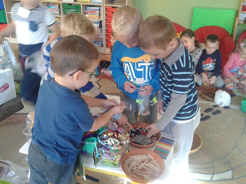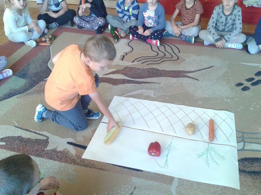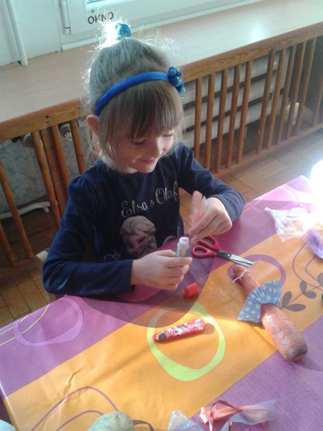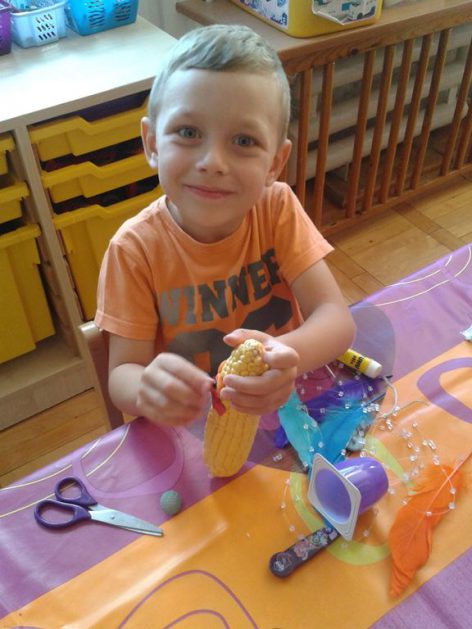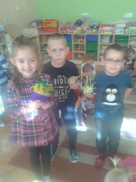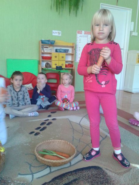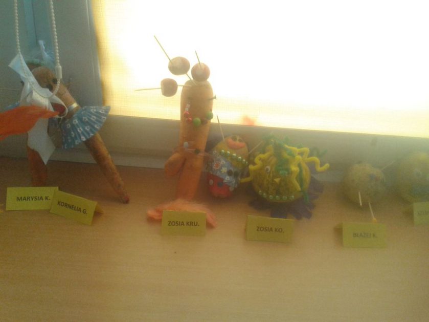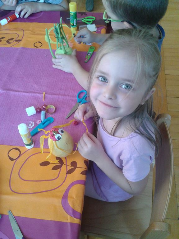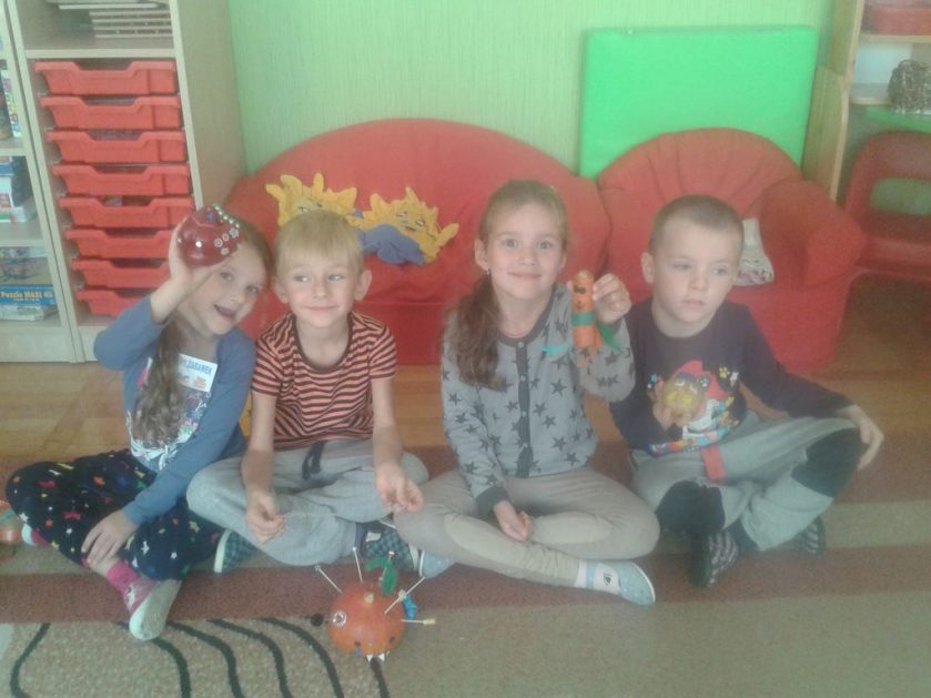 5-latki przekonały się, że warzywa to nie tylko witaminy i zdrowie, ale też wiele fajnej zabawy. Puściły wodze fantazji i przyozdobiły warzywa w koraliki, wstążki, bibułę, plastelinę tworząc śmieszne i urocze cudaki 🙂