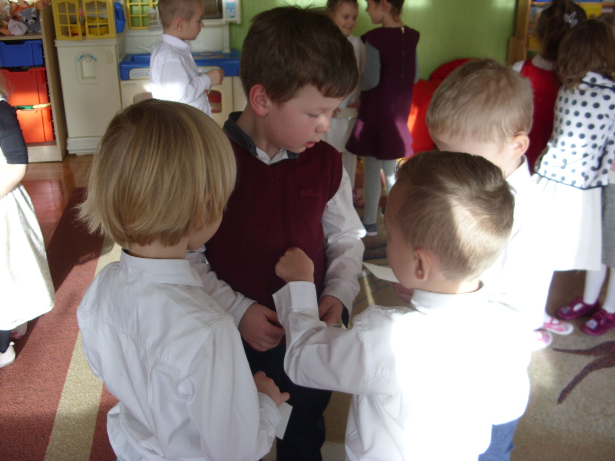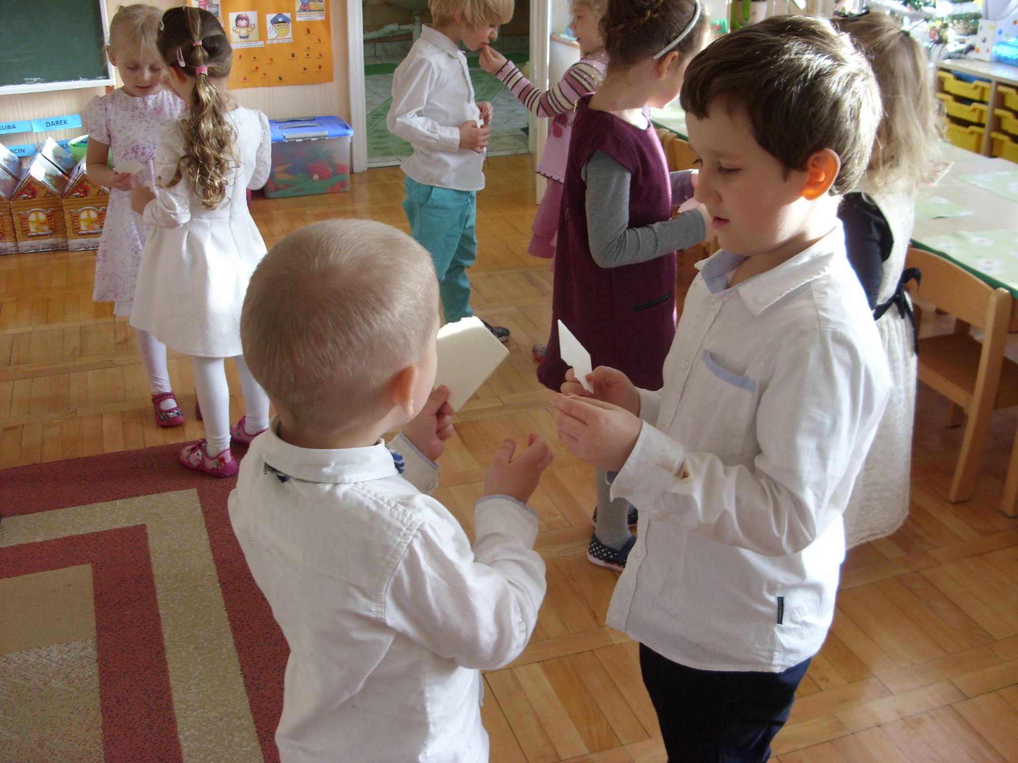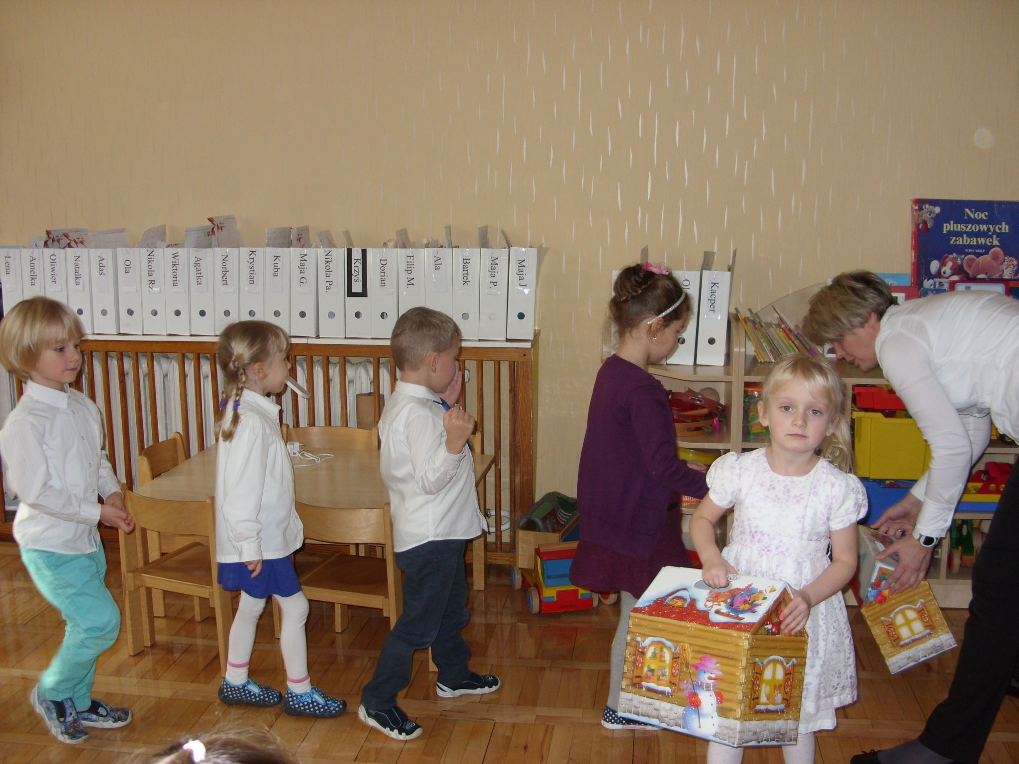 Podobno tylko najgrzeczniejsze dzieci dostają prezenty od Świętego Mikołaja. 4-latki w tym roku bardzo się starały, żeby Mikołaj o nich nie zapomniał. Oprócz prezentów, w świąteczny klimat wprowadziło dzieci także łamanie się opłatkiem, wspólny posiłek i kolędowanie.