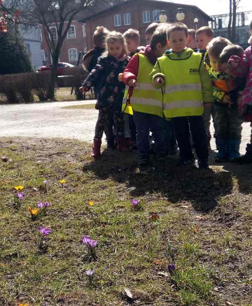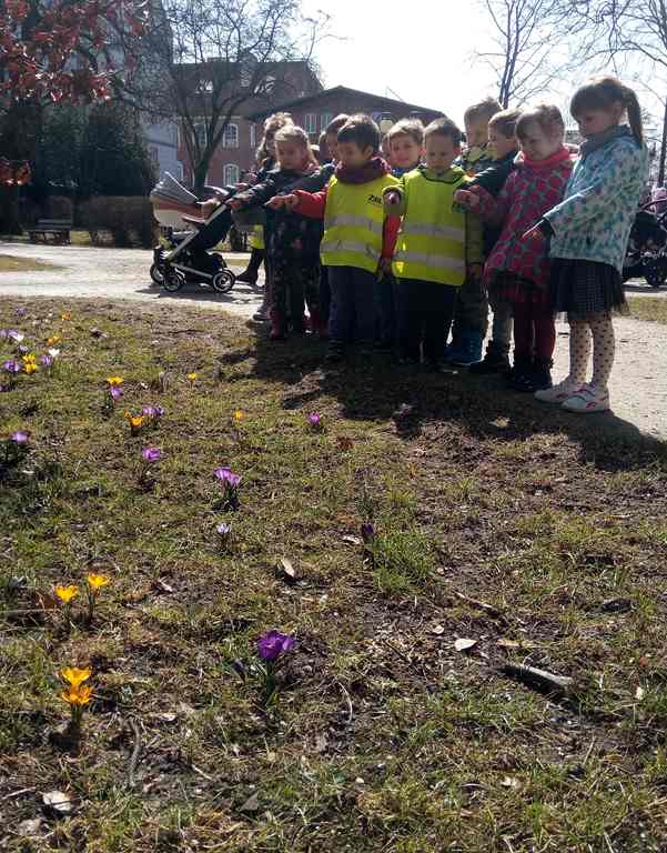 Już jest! Wiosna – dzieci wiedzą, widzą i słyszą jej dźwięki. 4 latki były w „Różanym parku”, gdzie obserwowały krokusową polanę. Wyglądała pięknie! Oprócz krokusów dzieci dostrzegły także małych mieszkańców, którzy po zimie z zapałem zabrali się do pracy: biedronki, pszczółki. Wszyscy cieszą się pierwszymi promieniami słońca!