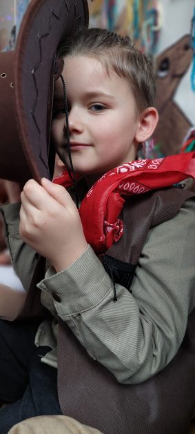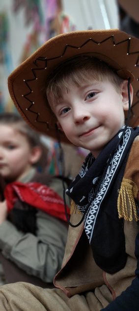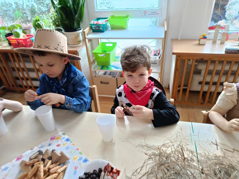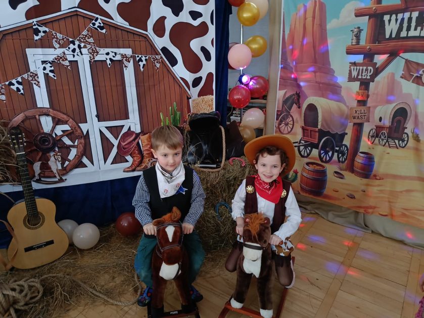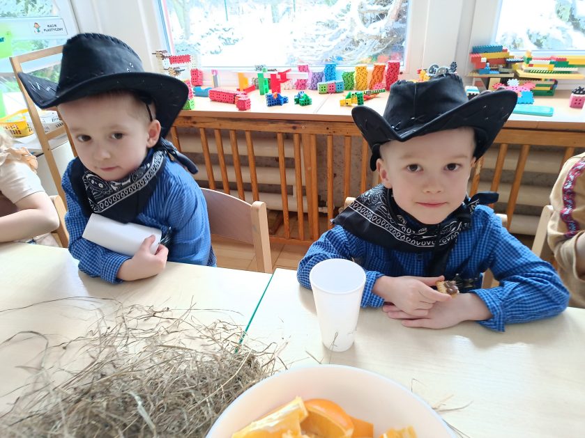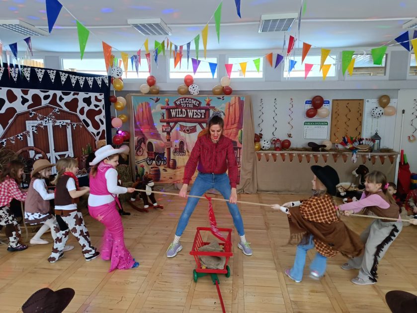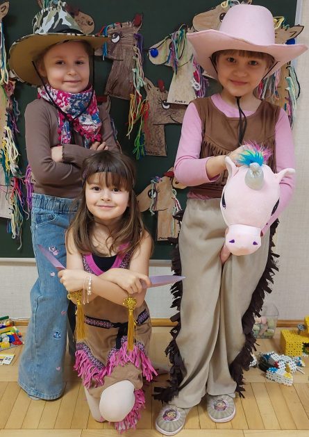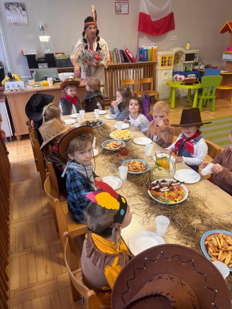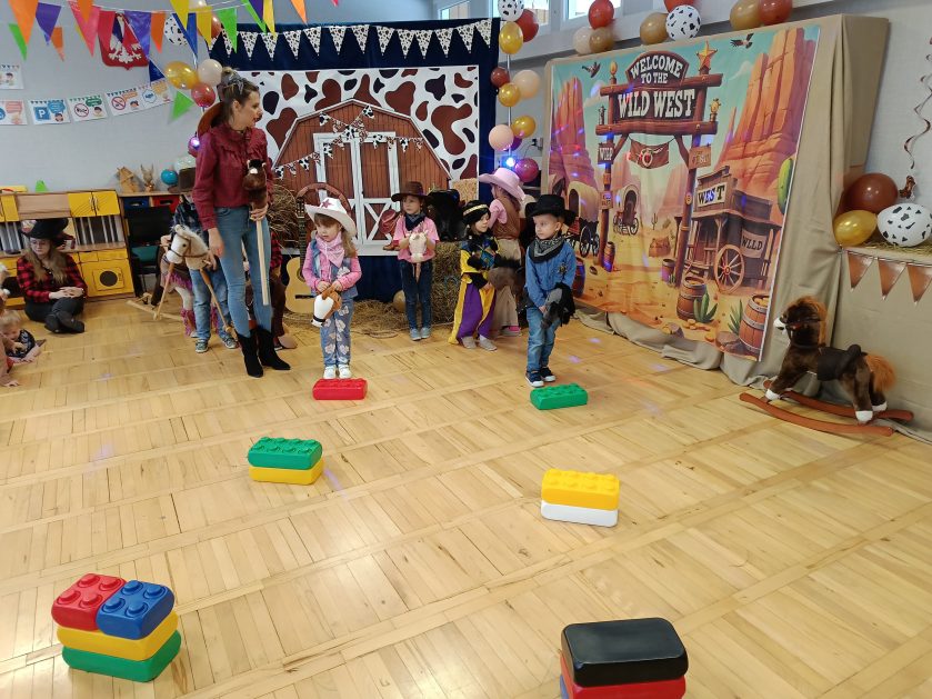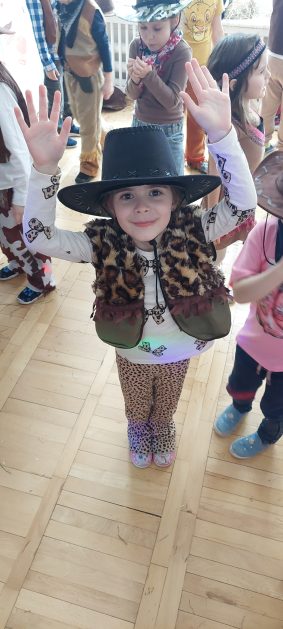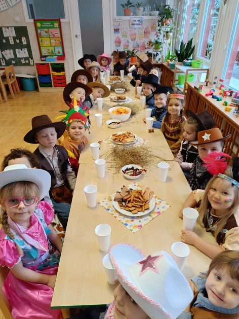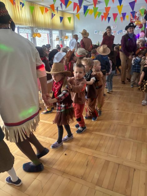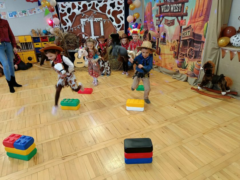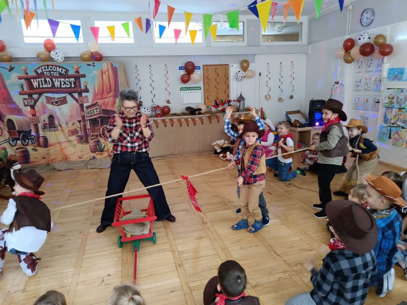 W tym roku u nas w przedszkolu tematem przewodnim na balu był „ Dziki zachód”, zatem na parkiecie królowali kowboje, szeryfowie oraz Indianie i Indianki. Przedszkolaki brały udział w zabawach tanecznych do znanych utworów muzyki country. Młodzi kowboje i kowbojki mieli okazję, uczestniczyć w różnych konkurencjach. Radość i energia tryskały z każdego zakątka sali! Przerywnikiem był słodki poczęstunek.