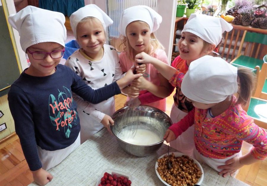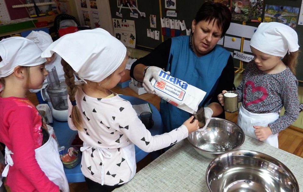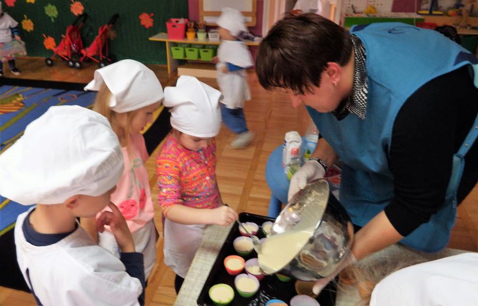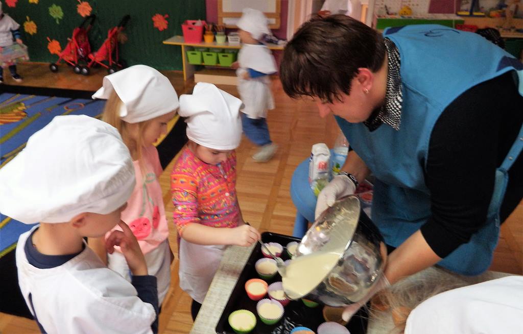 Święto Edukacji Narodowej to ważna i miła uroczystość, która co roku w naszym przedszkolu daje dzieciom i wszystkim pracownikom przedszkola dużo radości. 5 – 6 latki p. Hani podjęły duże wyzwanie, samodzielnie i z pomocą jednej mamy upiekły słodkie niespodzianki dla całego personelu. Pracy było dużo, każdy miał zadanie do wykonania. Dzieci pracowały jak mrówki. Efekt był …. S M A C Z N Y !