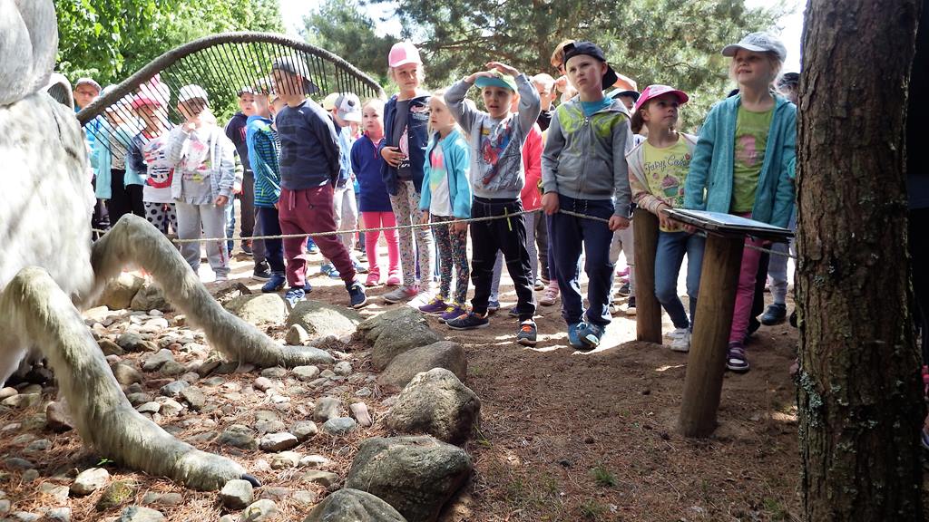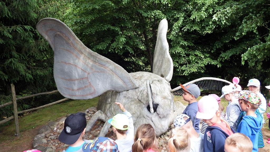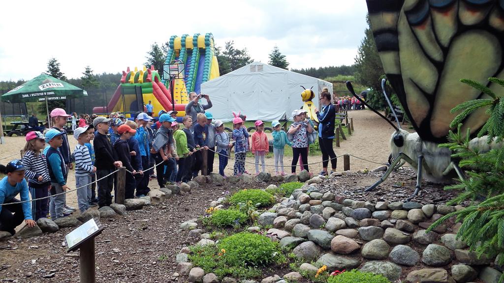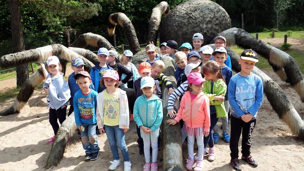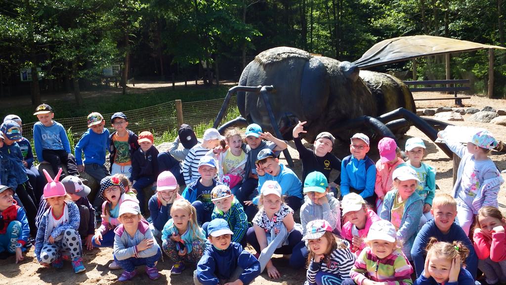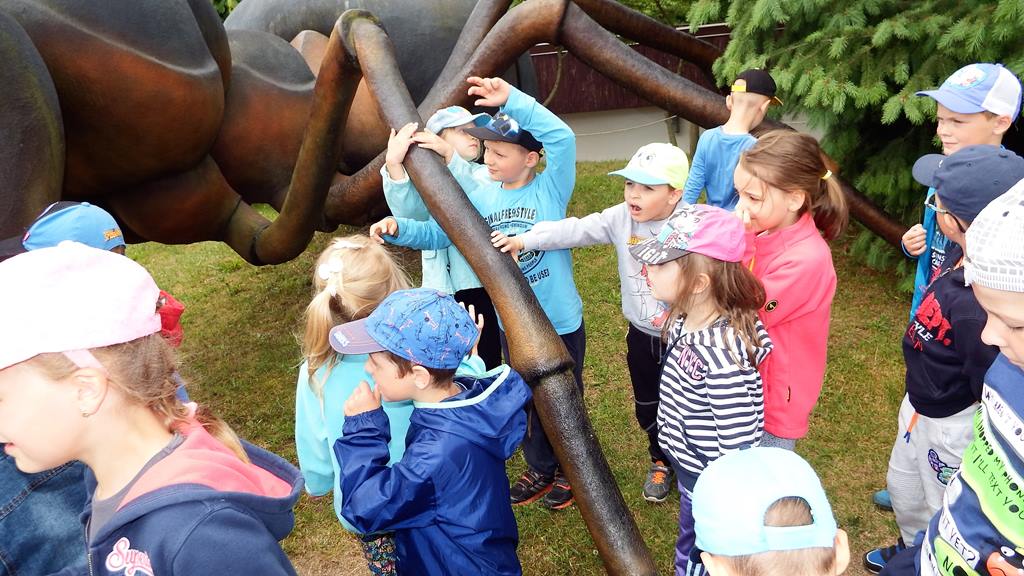 8 czerwca br. dwie grupy starszaków pojechały do Lubnicy, aby zobaczyć GIGANTYCZNE owady. Owadogigant to przepiękne miejsce, położone pośród zieleni drzew, dobrze zagospodarowane i przemyślane. Bogactwo flory pozwala również na obserwacje żywych okazów, czego doświadczyły same dzieci, znajdując różne jaszczurki i kijanki w stawie. W parku rekreacyjno – edukacyjnym idąc wyznaczonymi ścieżkami dzieci spotykały realistyczne modele owadów, wykonane w gigantycznym powiększeniu. Rzeźby wykonane z precyzyjną dokładnością i dbałością o ich budowę morfologiczną. Niektóre dzieci same korzystały z tablic informacyjnych i czytały ciekawostki wzbogacając swoje wiadomości. W takie miejsca można jeździć wiele razy i za każdym razem dostarczać nam będą wiele nowych, niezapomnianych wrażeń i pozytywnych emocji.