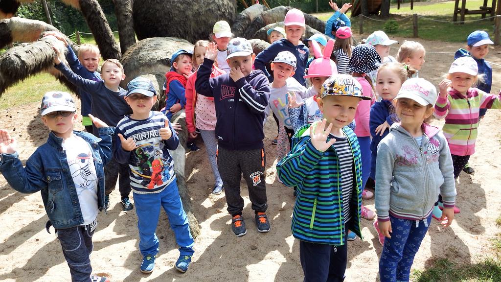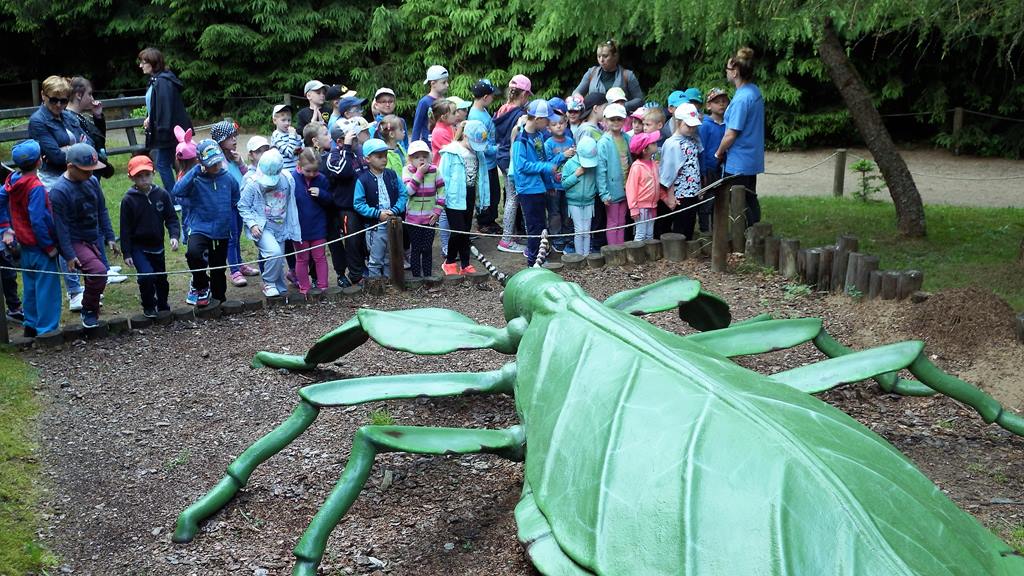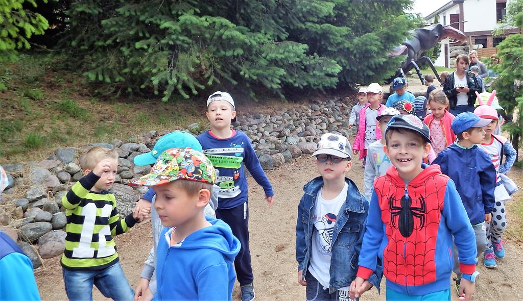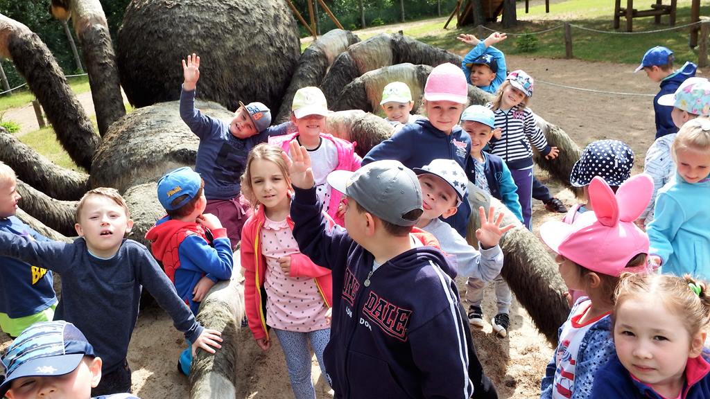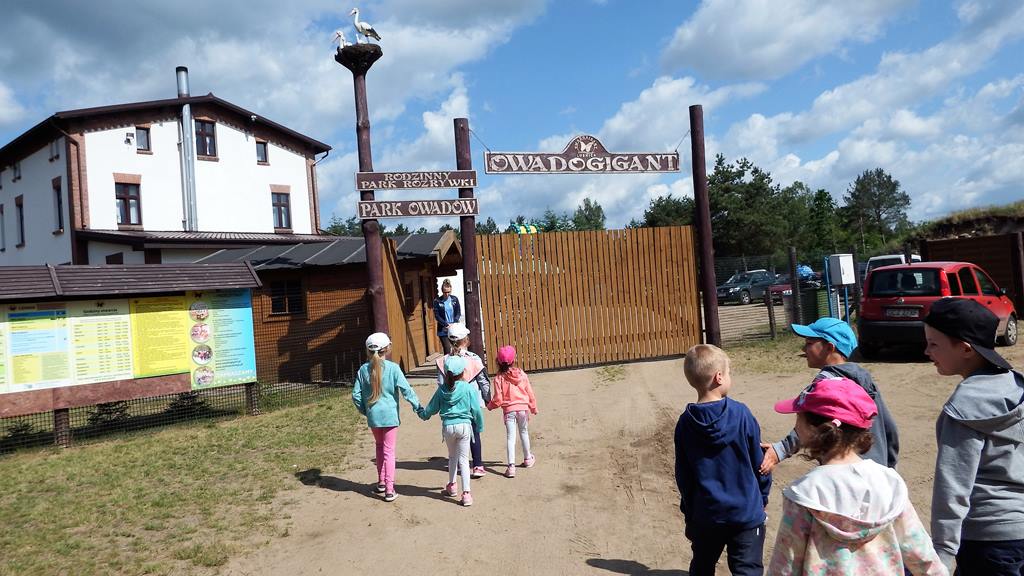 8 czerwca br. dwie grupy starszaków pojechały do Lubnicy, aby zobaczyć GIGANTYCZNE owady. Owadogigant to przepiękne miejsce, położone pośród zieleni drzew, dobrze zagospodarowane i przemyślane. Bogactwo flory pozwala również na obserwacje żywych okazów, czego doświadczyły same dzieci, znajdując różne jaszczurki i kijanki w stawie. W parku rekreacyjno – edukacyjnym idąc wyznaczonymi ścieżkami dzieci spotykały realistyczne modele owadów, wykonane w gigantycznym powiększeniu. Rzeźby wykonane z precyzyjną dokładnością i dbałością o ich budowę morfologiczną. Niektóre dzieci same korzystały z tablic informacyjnych i czytały ciekawostki wzbogacając swoje wiadomości. W takie miejsca można jeździć wiele razy i za każdym razem dostarczać nam będą wiele nowych, niezapomnianych wrażeń i pozytywnych emocji.