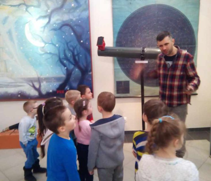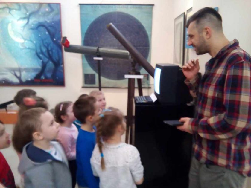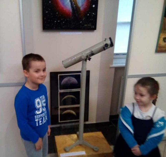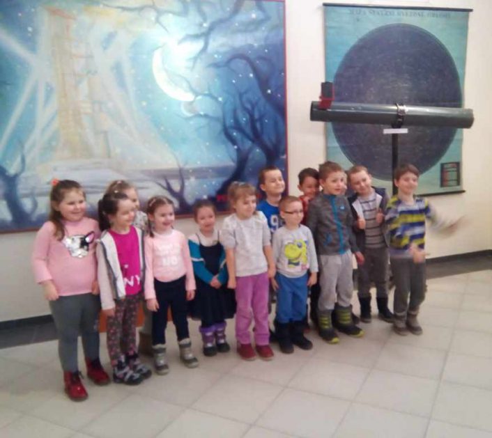 16.03.2018. dzieci z grupy 5-6-latków w ramach cyklicznych spotkań , kolejny raz odwiedziły Muzeum Regionalne w Szczecinku. Tym razem obejrzały wystawę przygotowaną z okazji 100 urodzin Adama Giedrysa, szczecineckiego astronoma- amatora i krawca w jednej osobie. Dzieci obejrzały eksponaty i zdjęcia związane z pracą i zainteresowaniami Adama Giedrysa oraz wysłuchały ciekawostek z jego życia . Głównym celem spotkania było przybliżenie sylwetek ludzi, którzy zasłużyli się dla naszego miasta oraz rozwijanie poczucia lokalnej tożsamości.