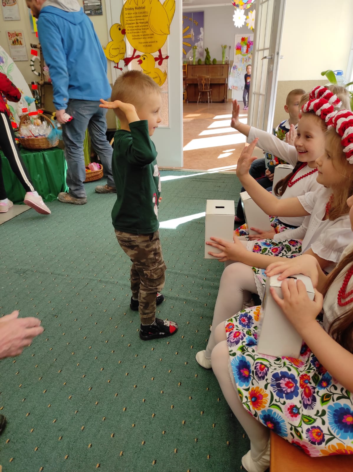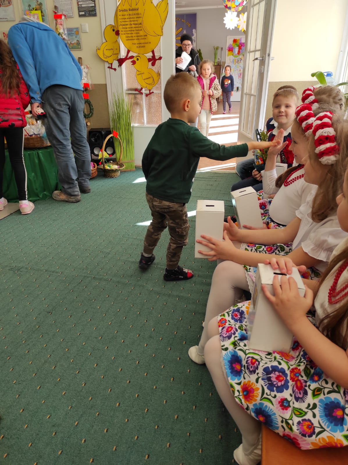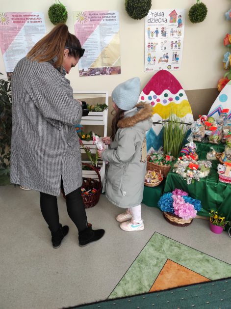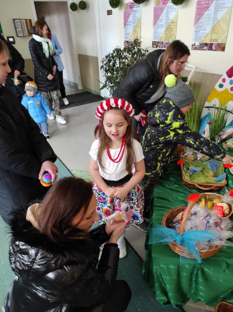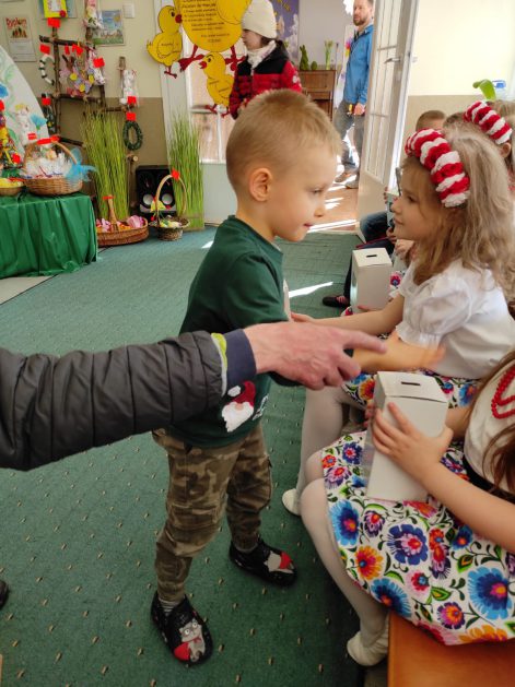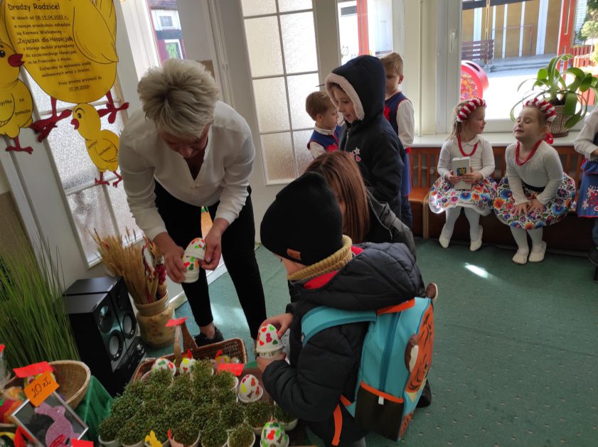 To już nasza tradycja, gdy zbliżają się Święta Wielkanocne w naszym przedszkolu organizujemy Kiermasz Wielkanocny, aby wesprzeć szczecineckie hospicjum w ramach akcji Pola Nadziei. Jak co roku akcja cieszy się dużym zainteresowaniem. Angażują się dzieci w przedszkolu robiąc różne świąteczne drobiazgi, jak również rodzice poświęcając swój wolny czas na wykonanie ciekawych dekoracji świątecznych. Wybór jest ogromny, tłumy kupujących rodziców i uśmiechy radości na twarzach dzieci to dowód na to, że idea jest szczytna. Serdecznie dziękujemy wszystkim rodzicom za zaangażowanie i wsparcie, takie działania pomagają rozwijać u dzieci empatię, uczą większej wrażliwości na potrzeby i problemy innych, a przede wszystkim pokazują, że wspólnie możemy zdziałać więcej!
