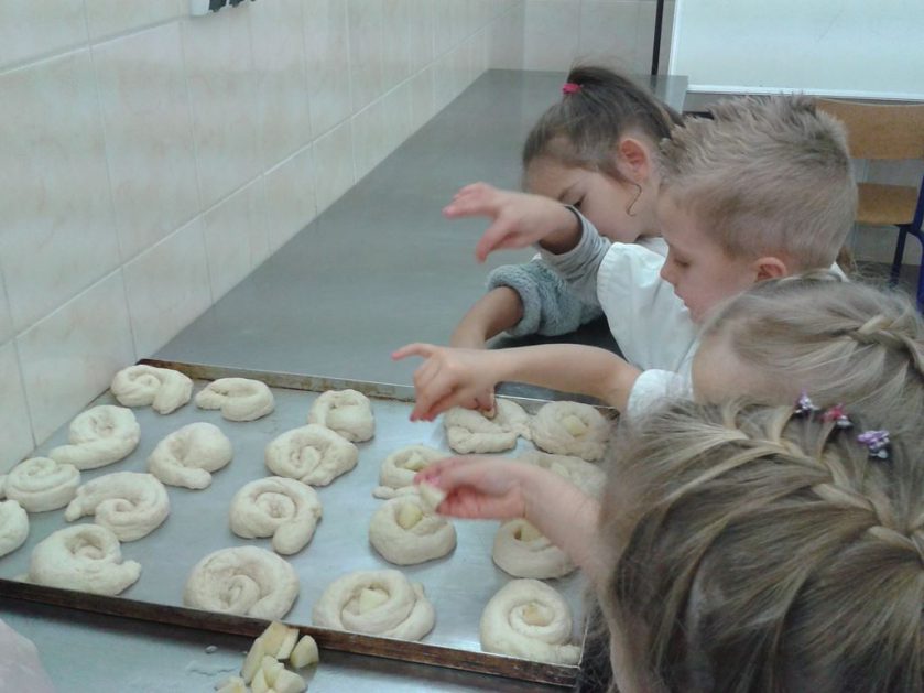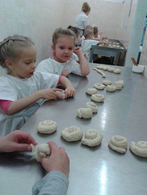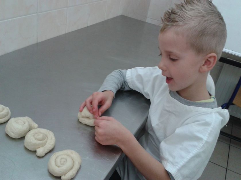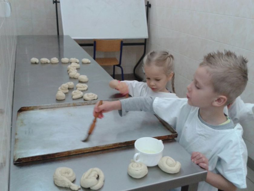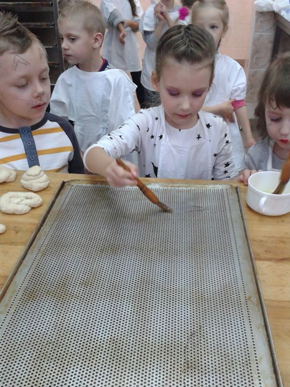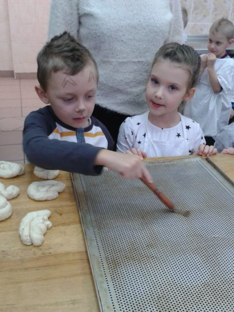 Ponownie, tak jak w ubiegłym roku, nasza grupa udała się na zajęcia kulinarne do Zespołu Szkół nr 2 im. Księcia Warcisława IV. Tym razem poznaliśmy przepis na zrobienie pysznych, słodkich drożdżówek. Samodzielne działania dzieci pozwoliły im przekonać się ile pracy trzeba włożyć w przygotowanie posiłku. Mimo wysiłku zajęcia okazały się świetną zabawą. Dodatkową atrakcją były zajęcia fryzjerskie. Przedszkolaki z uśmiechem na twarzy