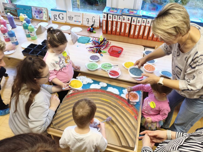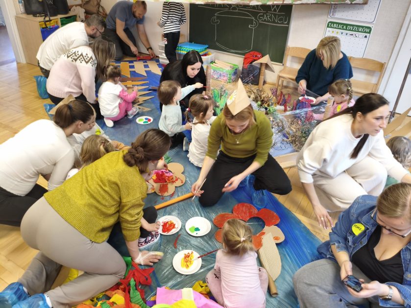 5 marca w naszym przedszkolu był to dzień otwartych drzwi dla wszystkich przyszłych członków naszej przedszkolnej rodziny. Tego wyjątkowego dnia, nasi najmłodsi goście mieli możliwość doświadczenia pierwszej styczności z przedszkolnym światem, przełamując wszelkie obawy i stresy. Dzięki odwadze i zaciekawieniu, maluszki szybko zanurzyły się w przygotowane przez naszą kadrę aktywności, eksplorując każdy kąt naszej placówki z nieukrywaną radością. W każdej sali czekały niespodzianki, zabawy muzyczno – integracyjne, kreatywność plastyczna, aktywność ruchowa – strażacki tor przeszkód oraz na koniec zapraszała z daleka „pracownia słodkości” gdzie dzieci mogły samodzielnie udekorować babeczki i stworzyć szaszłyki „owocowe dżdżownice”. Dzień Otwarty w naszym przedszkolu był nie tylko okazją do zaprezentowania oferty edukacyjnej i opiekuńczej, ale również wspaniałym momentem budowania wspólnoty. Uśmiechy dzieci, zadowolenie rodziców świadczą o tym, że takie dni są nieocenione.