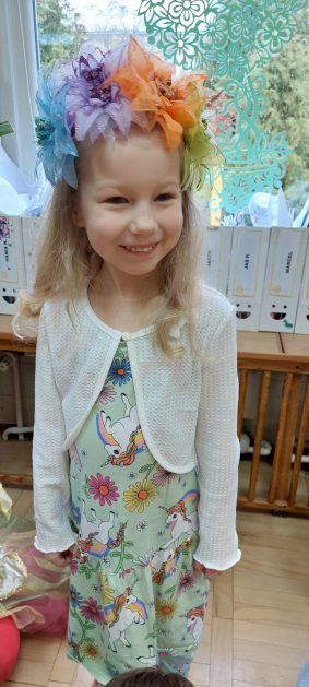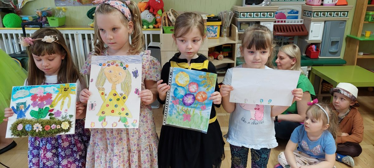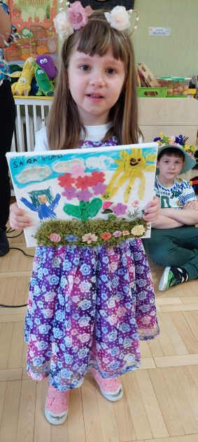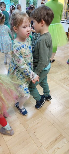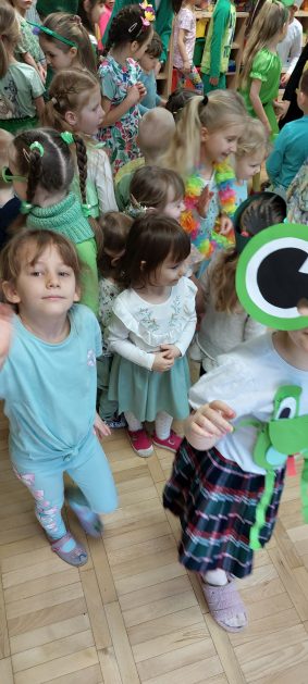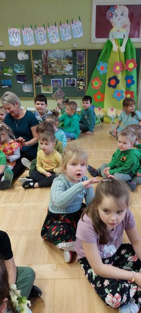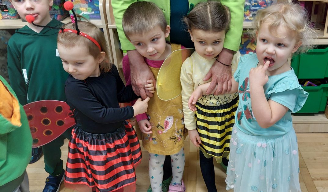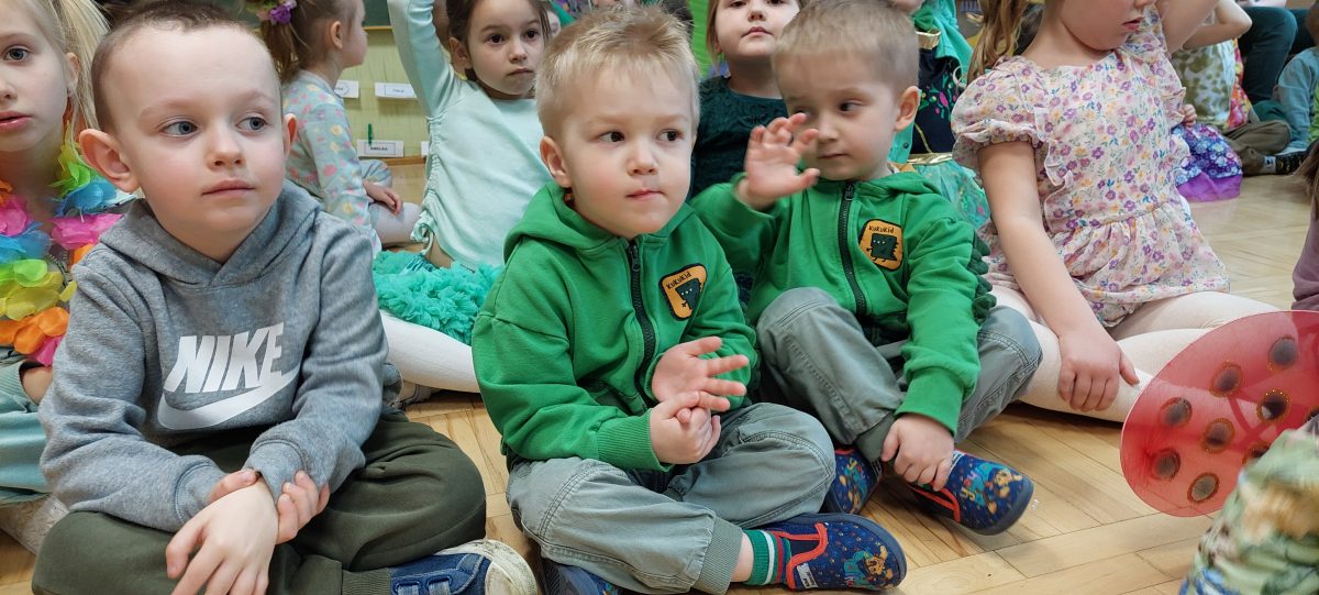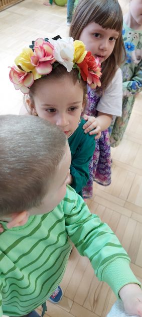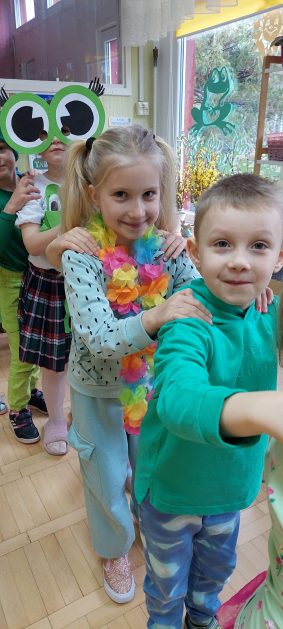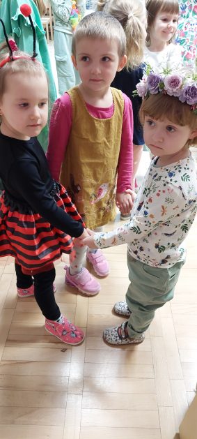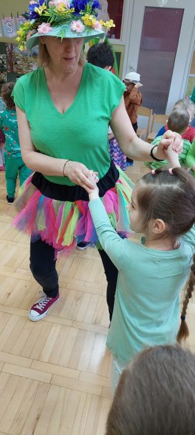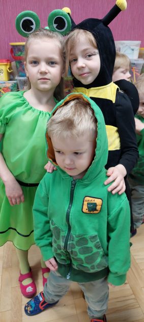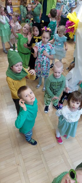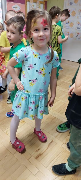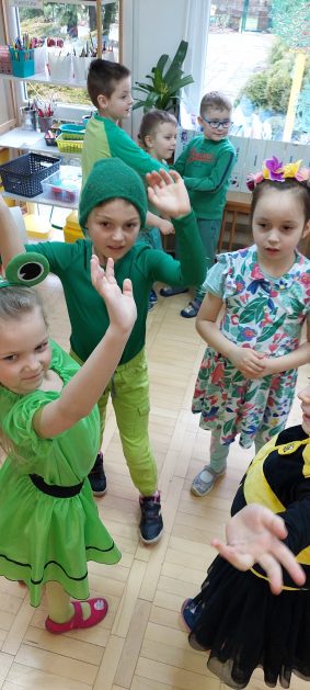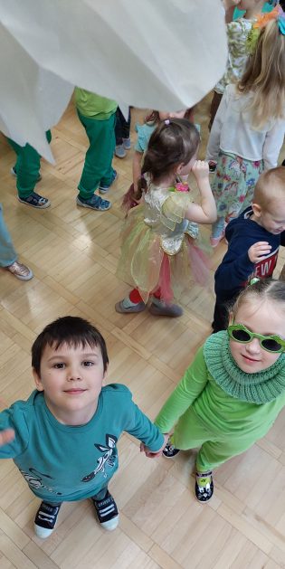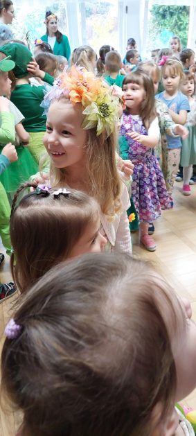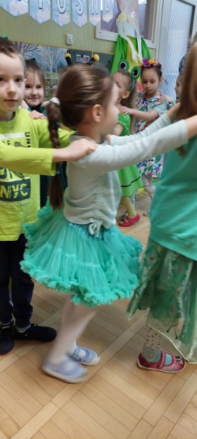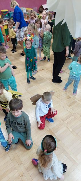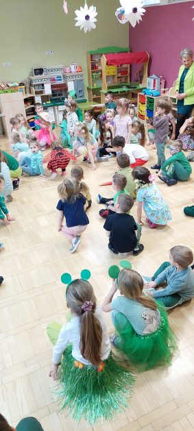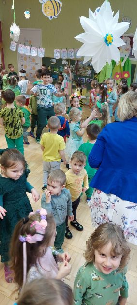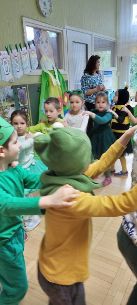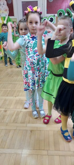 21 marca dzieci oficjalnie powitały pierwszy dzień kalendarzowej wiosny! Pożegnanie zimy i przywitanie wiosny związane jest z miłymi przeżyciami dla przedszkolaków. Wszyscy mamy dość zimnych poranków i wielu chorób, które psują humor dzieciom i spędzają sen z powiek rodziców. Chcemy ciepła, kwiatów, zielonych drzew i śpiewających ptaków!!! Na bal do Pani Wiosny przybyły biedronki, bociany, żabki, pszczółki, wszędzie było zielono. Nie zabrakło piosenek, zagadek wiosennych oraz uśmiechów i dobrego humoru! Niestety jak to bywa w marcu, czyli jak „w garncu” pogoda nam nie dopisała, spłatała figla i mocno pokropiło, więc nie mogliśmy wyruszyć wiosennym korowodem na ulice naszego miasta, aby oznajmić wszystkim: „Koniec śniegu! Wiosna w biegu! Już bociany powracają. Już skowronki koncert dają. Tu krokusy, tam żonkile spoglądają na świat mile. Budzi się przyroda w koło, będzie pięknie i wesoło. Słońce teraz częściej świeci, na dwór wzywa wszystkie dzieci.” Na balu nagrodziliśmy również dzieci, które wzięły udział w konkursie plastycznym „Wiosna oczami dziecka” – Gratulacje!!!