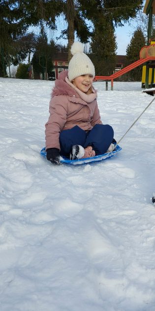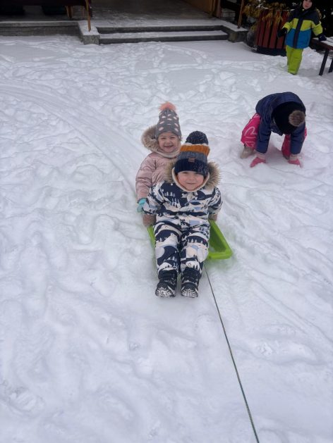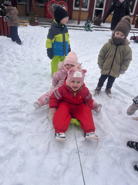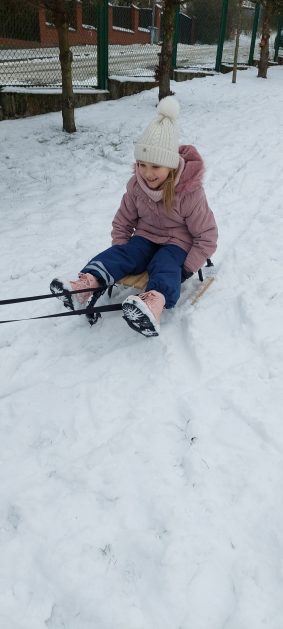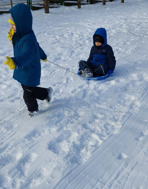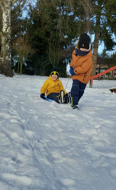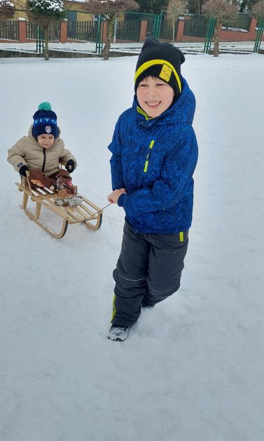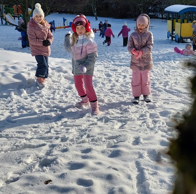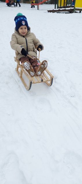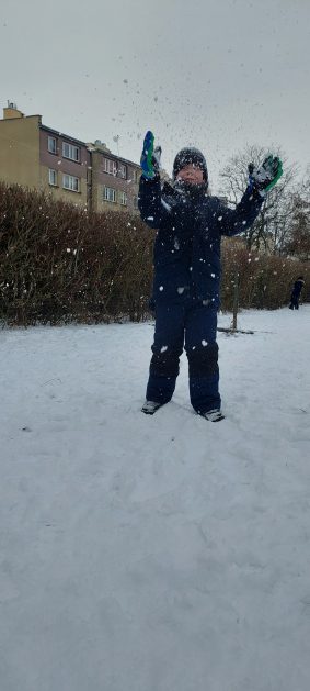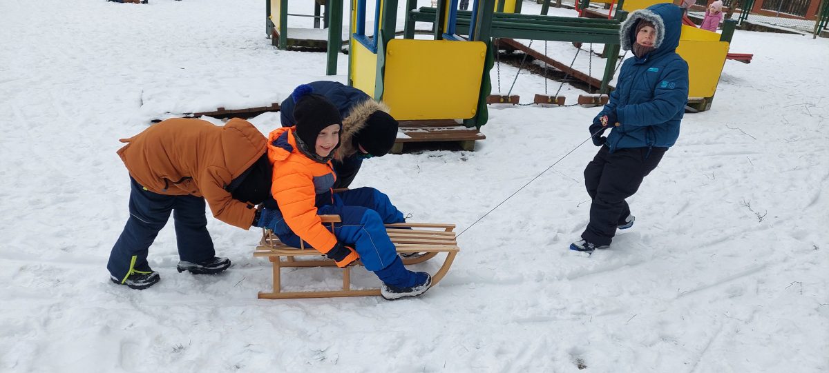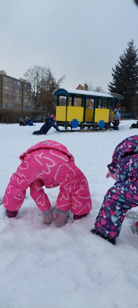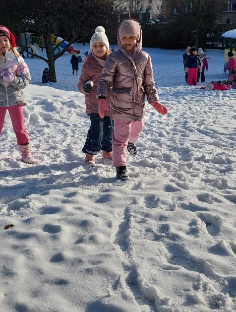 Pory roku to karuzela zmieniających się kolorów. W naszym ogrodzie dzieci mogą przez cały rok oglądać piękną paletę barw natury. Teraz jesienna purpura i wszelkie rudości ustąpiły miejsca zimowej bieli. Kiedy pytamy dzieci: „Jaką porę roku lubią najbardziej?” – odpowiedzi są różne tak ja różne są dzieci, ale duża przewaga naszych milusińskich uwielbia zimę! Nie za kolory, bo to monochromatyczna barwa, ale głównie za doznania sensoryczne: śnieg, aniołki na śniegu, lepienie bałwanów, rzucanie się śnieżkami, jazda na sankach, nartach czy łyżwach, białe krajobrazy, pokryte śniegiem drzewa, skrzypienie śniegu pod butami, zimne powietrze na twarzach, marznące nosy i paluszki…Nie ważne, że dzieci się złoszczą, denerwują podczas ubierania wielu warst odzieży, zimowe zabawy na śniegu szybko rekompensują złe emocje i wyzwalają naturalną radość i zadowolenie!