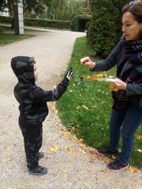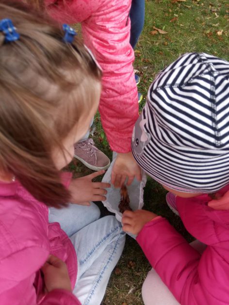 Pierwsze spotkanie w CEEiRJ – sprzyjająca pogoda, wspaniałe warunki do prowadzenia obserwacji w parku – wszystko sprawia, że dzieci mogą sensorycznie poznawać otaczający świat przyrody.