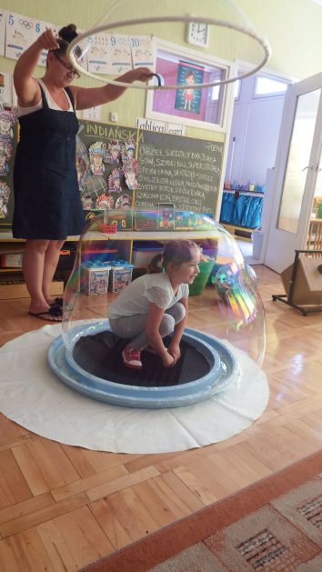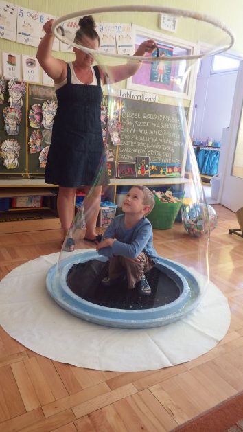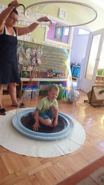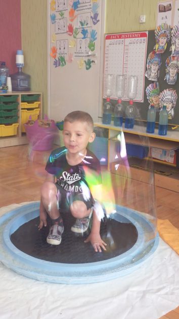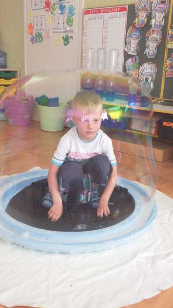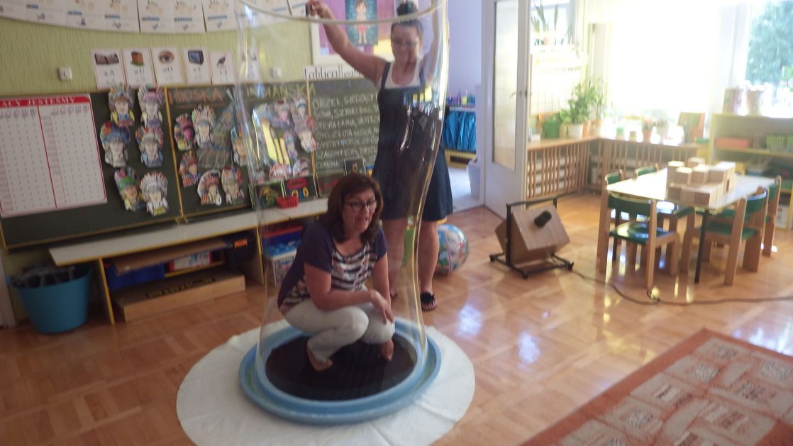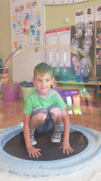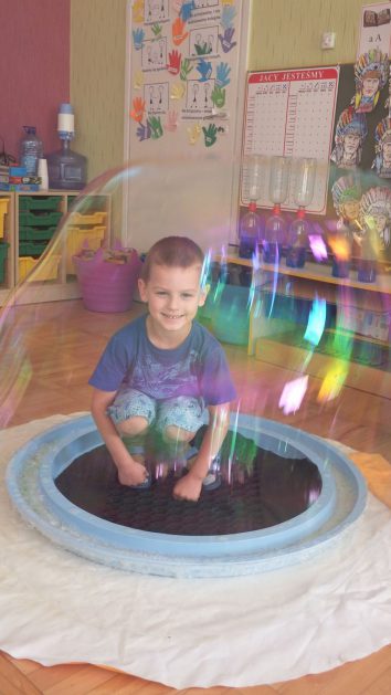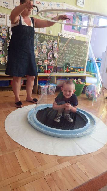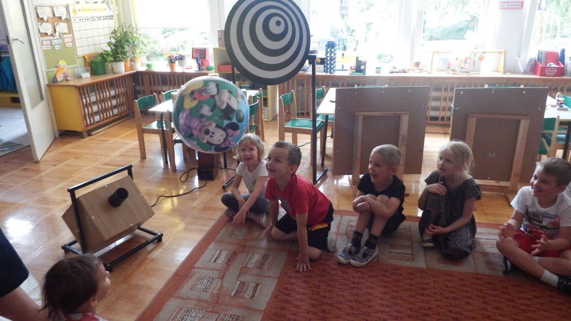 Fizyka to próba zrozumienia zjawisk otaczającego nas świata. Dlatego 6 czerwca 5 latki uczestniczyły w pierwszych interaktywnych zajęciach edukacyjnych, które pokazały dzieciom, że z fizyką spotykają się na co dzień, że elementy otaczającego ich świata pozwalają na ciekawe doświadczenia. Ważnym elementem spotkania było to, że główną i czynną rolę odgrywały dzieci uczestnicząc we wspaniałej zabawie. Dzieciom podczas spotkania towarzyszyły wielkie emocje, a co ważne znacznie wzbogaciły swoją wiedzę na temat otaczającego świata. Była to okazja do zadawania wielu pytań i szukania na nie odpowiedzi a poprzez konkretne doświadczenia za pomocą wielu zmysłów dochodziły do różnych wniosków.